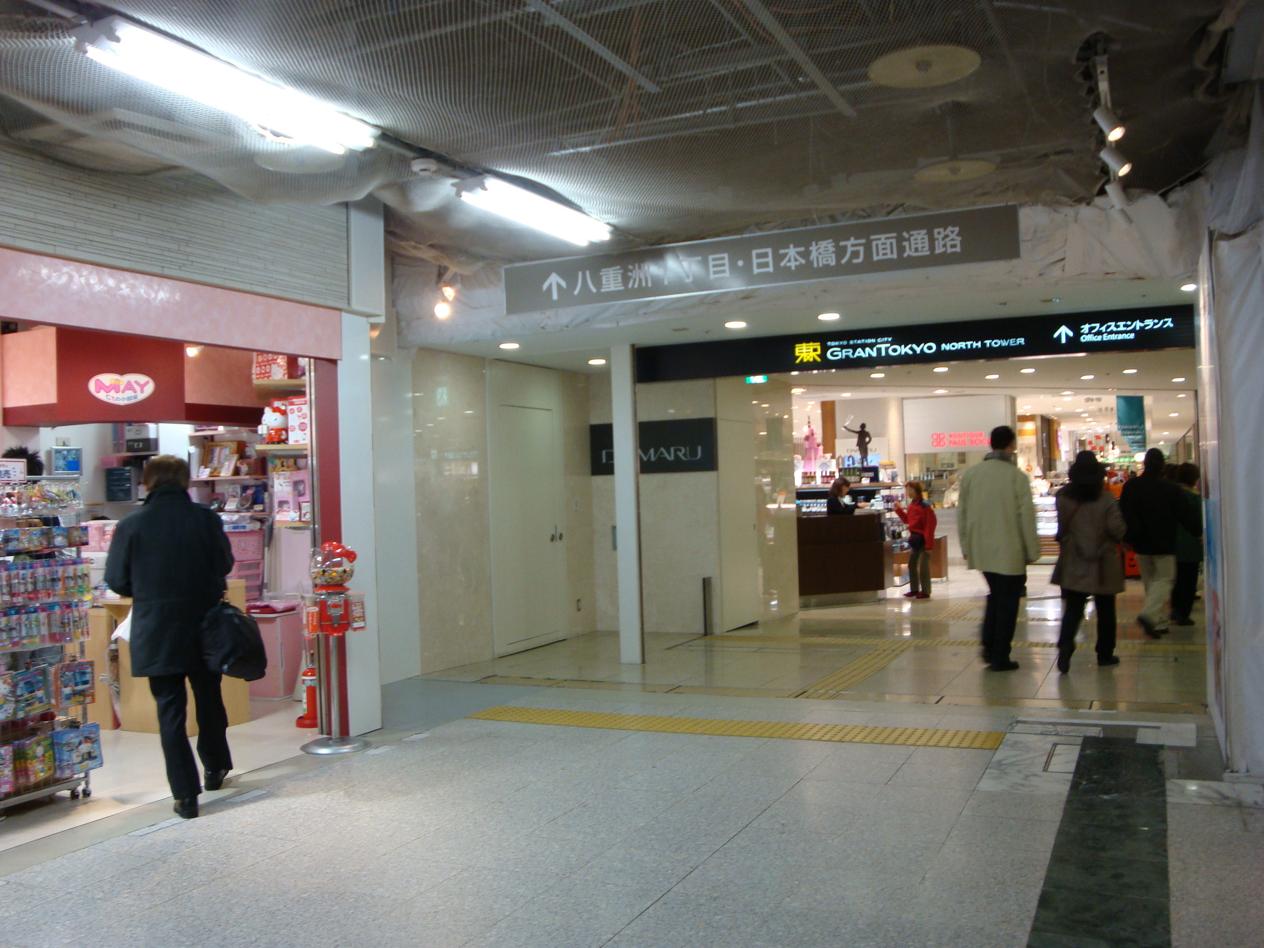 搭乘地鐵到『東京駅』後下車,尋著路標走到『中央通路』。接下來會看到一邊是往『丸之內口』、一邊是往『八重洲口』,總之就繼續跟著指標,一直往『八重洲中央口(B1F)』和『銀之鈴廣場』的方向走,就能看到『東京駅一番街』的入口了。我知道這樣描述很抽象,其實自己也是隨便亂逛而找到的(汗)。因此在出發之前,一定要先到官網把地圖印下來,如果在複雜的車站裡頭迷路,至少還可以拿地圖去詢問工作人員。我是不太敢問人啦(日文很破XD),所以事先準備好的地圖成了救命仙丹,指引我走到目的地。