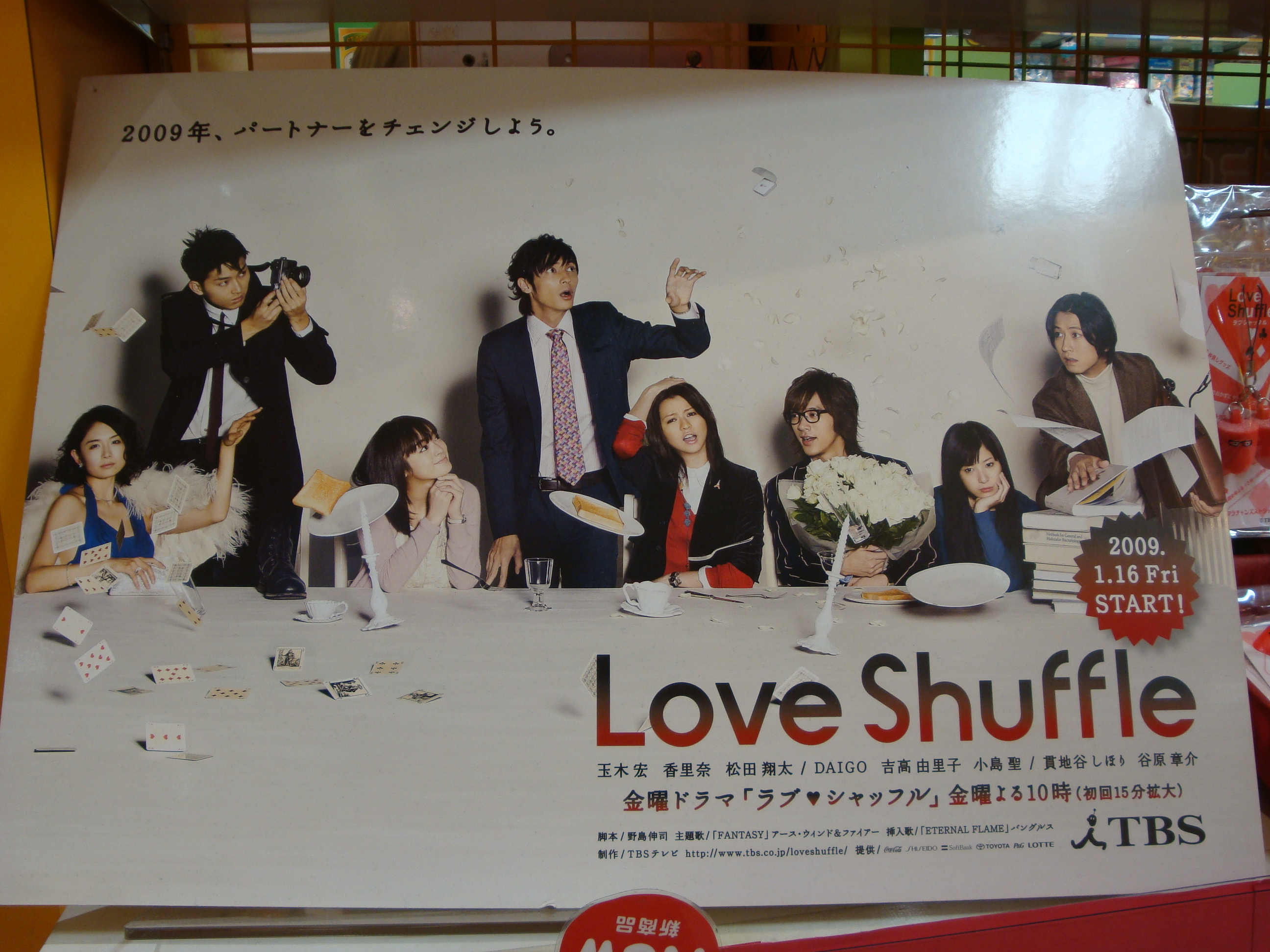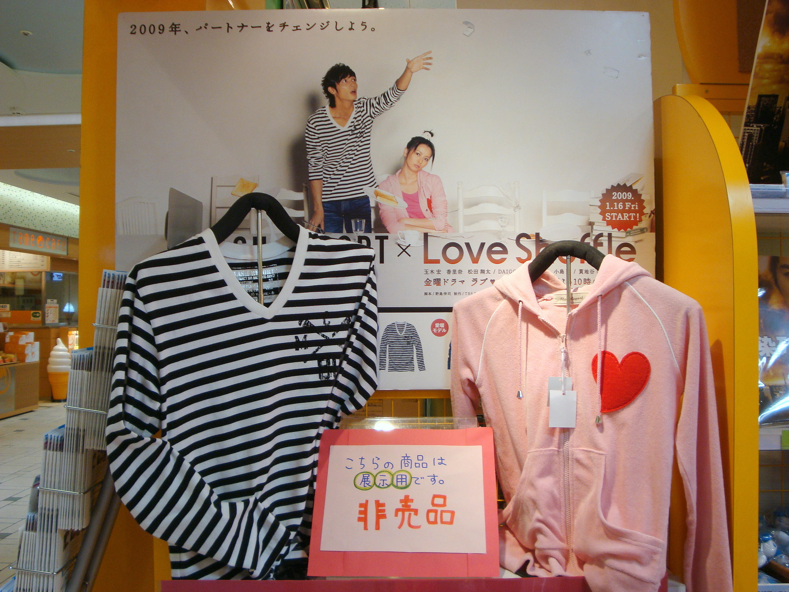 ▲贏得觀眾迴響與口碑的《ラブシャッフル》,週邊商品也賣得火熱。不過,此劇相關的東西,『TBS store 東京駅店』竟然都沒貨了(驚),要買的話得去總部才行。尤其是愛瑠所穿的粉紅色愛心休閒運動外套,連我後來到赤坂的SHOP,也發現缺貨,果然搶手啊!