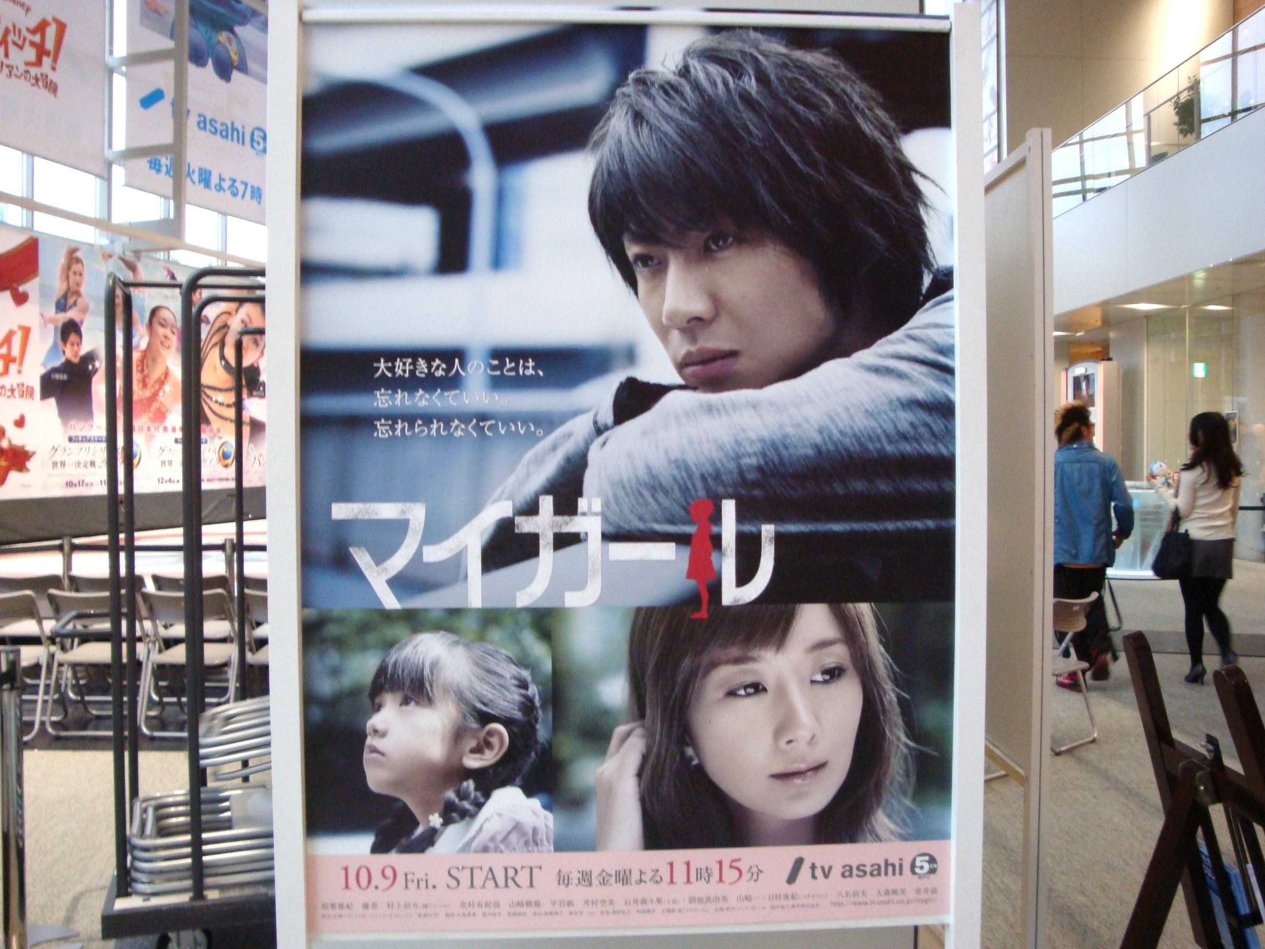 我老早就想來朝日電視台逛逛了,曾經有兩次跟它擦身而過的經驗,讓我非常無奈,明明已經到六本木,卻沒時間讓我參觀一下電視台(淚)。利用這次長時間住在日本的機會,終於可以彌補過去的遺憾。這季朝日的日劇我只有追兩部,分別是相葉雅紀首次主演的《マイガール》,以及仲間由紀惠扮演記者的《アンタッチャブル》。愛拔爸爸跟萌萌果的組合,實在太可愛啦!兩人的笑容越看越像。不過,老實說劇情真的很單薄(前兩集有讓我感動到想哭,但中間穿插其他配角的故事,就變得有點無聊),也沒什麼高低起伏,這麼平淡的故事用漫畫的方式呈現不會有什麼問題,因為大家可以慢慢欣賞作者細膩唯美的畫風,但是搬上電視螢幕之後,卻很難吸引觀眾目光。或許電視台也知道這個問題,所以特地找來目前日本最紅的天團ARASHI成員來扮演主人公的角色,再搭配上超可愛的小童星,這樣一來,即使故事本身不夠精采,CAST也夠吸引人了!
